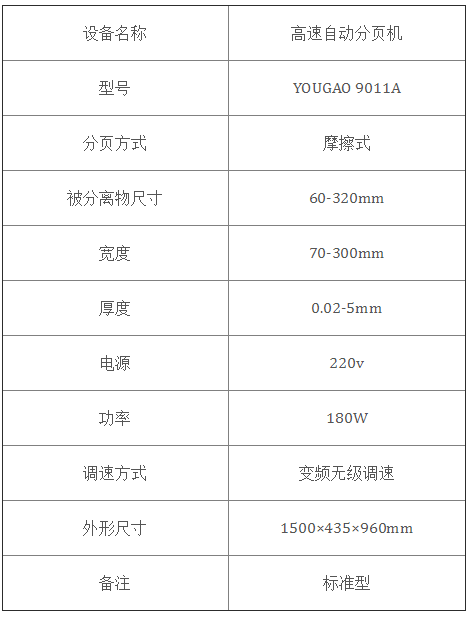 適用范圍: 1、包裝袋:塑料袋、紙盒、紙袋、標(biāo)簽、紙片等。 2、片狀物品:IC卡、IP卡等 用途: 用于將成疊的包裝袋或卡類自動(dòng)分開,成單頁傳送到輸送帶上,便于噴碼機(jī)或激光機(jī)進(jìn)行噴印、噴刻生產(chǎn)日期、批號(hào)、防偽標(biāo)記、圖案等,從而減少人工分頁的繁瑣,充分發(fā)揮噴碼機(jī)、激光機(jī)的高速噴印優(yōu)點(diǎn),提高噴印工作效率,方便生產(chǎn)管理。 特點(diǎn): 1、進(jìn)口變頻無極調(diào)速,高速自動(dòng)分頁60-600個(gè)/分鐘。 2、分頁高速度、定位高精度、生產(chǎn)高效率。 3、結(jié)構(gòu)設(shè)計(jì)合理,更換易損件簡(jiǎn)單快捷。 4、可選附件:*自動(dòng)收料裝置*分頁機(jī)單獨(dú)計(jì)數(shù)停機(jī)信號(hào)源*可自動(dòng)進(jìn)行計(jì)數(shù),也可自行設(shè)定分頁數(shù)量,到要求分頁數(shù)量自動(dòng)停機(jī),設(shè)定范圍1-9999(需要與噴碼機(jī)、激光機(jī)信號(hào)共享)。 |