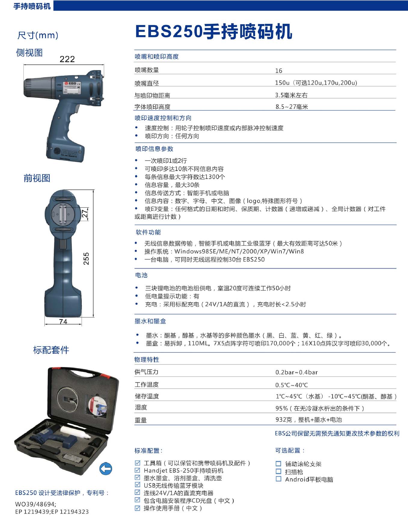 德國EBS260手持大字符噴碼機 32點陣 可打二維碼 化工建材鋼管紙箱編織袋用大字符噴碼 ...