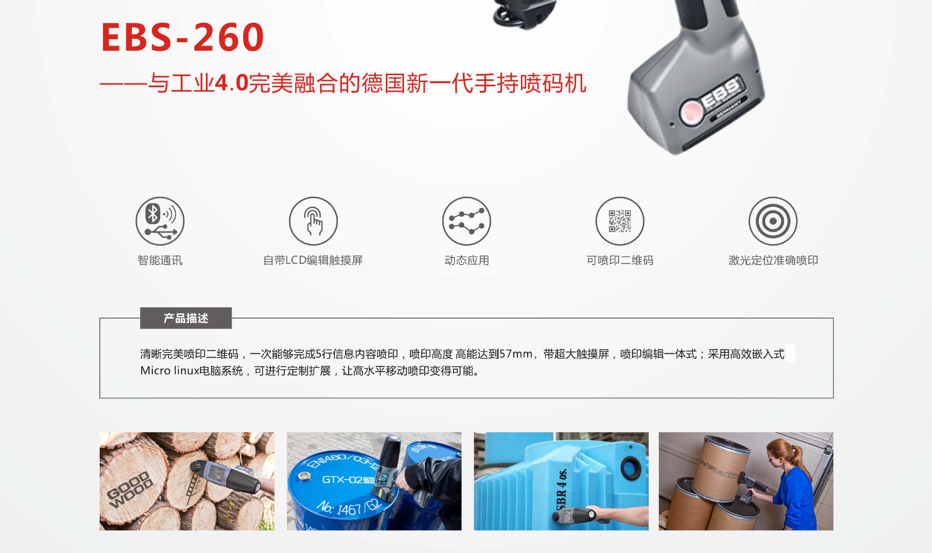 : 德國(guó)EBS260手持大字符噴碼機(jī) 32點(diǎn)陣 可打二維碼 化工建材鋼管紙箱編織袋用大字符噴碼機(jī)